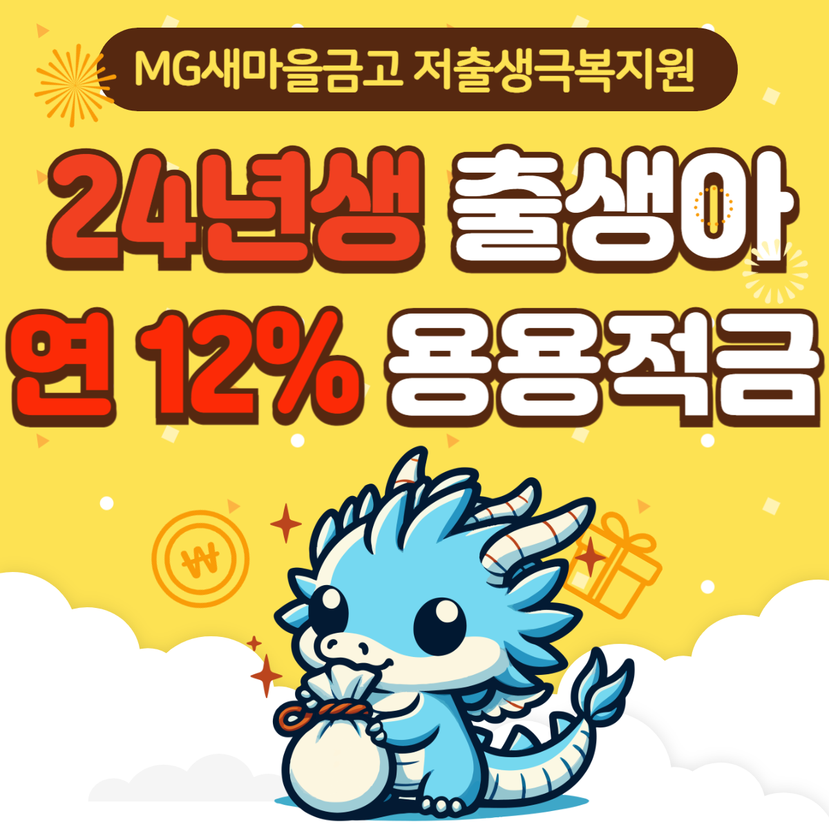 MG 새마을금고에서 2024년 청룡의 해를 기념하여 저출생극복지원 상생금융상품 [용용 적금] 상품을 내놓았습니다.